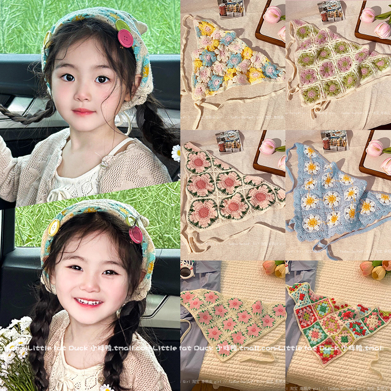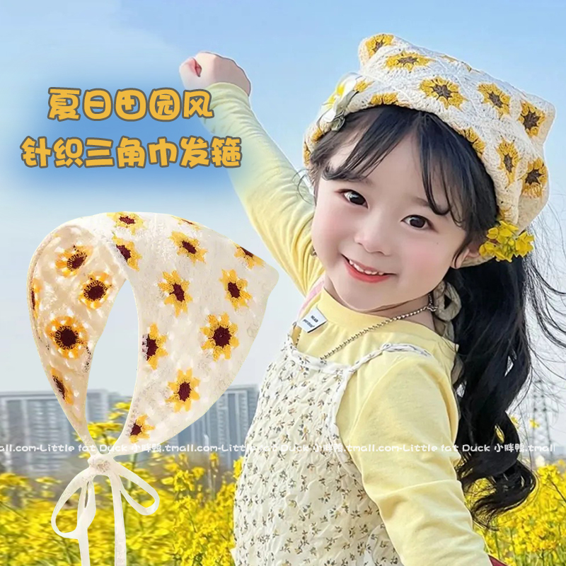 儿童田园风三角巾头巾发箍女童针织发带拍照头饰发小女孩镂空头箍
