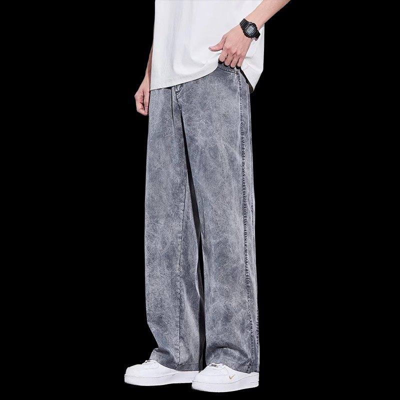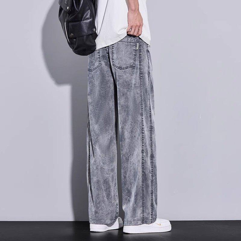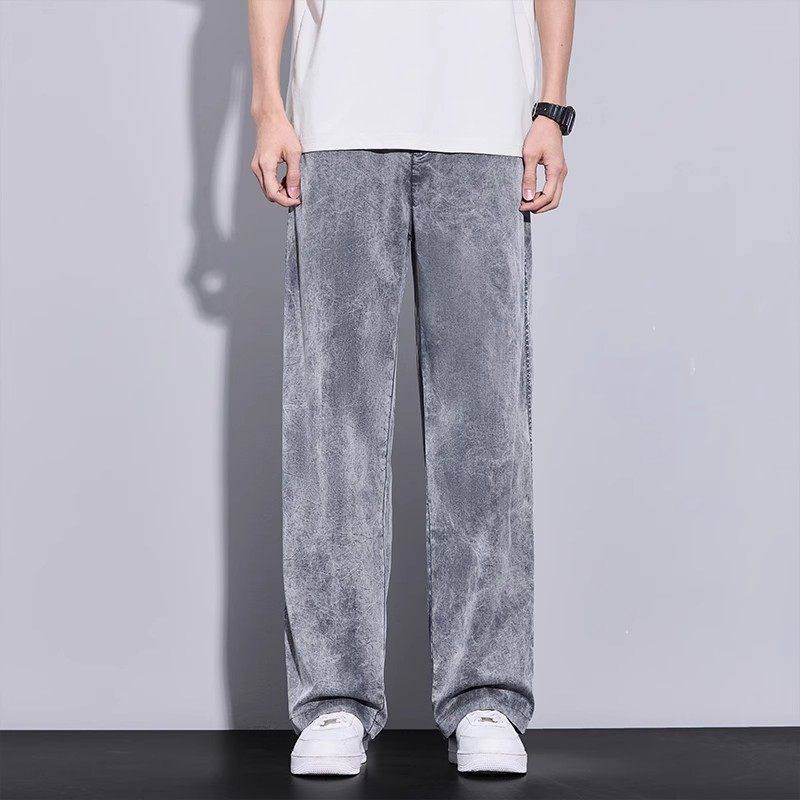 Yishion以纯正品直筒牛仔裤男款春秋季2025新款男士宽松雪花阔腿