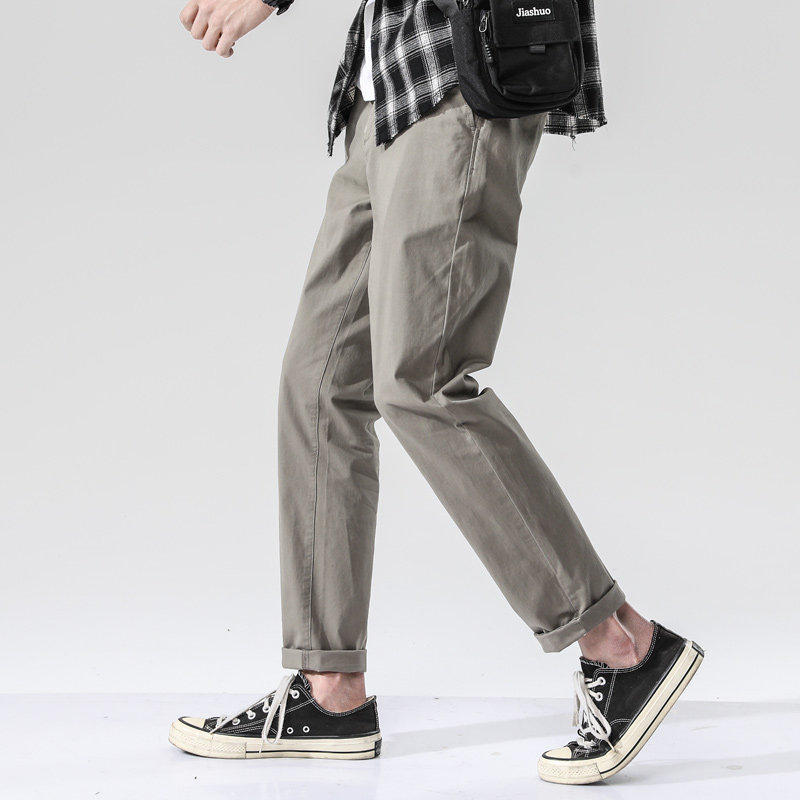 直筒修身小脚纯棉休闲长裤男士