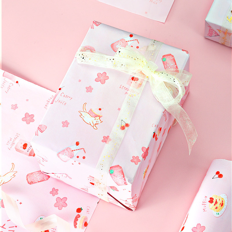 礼物包装纸礼品纸包礼物的礼物纸大圣诞生日礼盒子母亲节儿童节粉色加丝带卡通可爱圣诞节万圣平安夜元旦新年