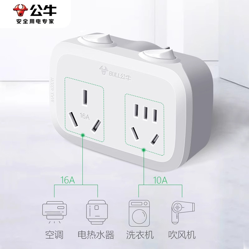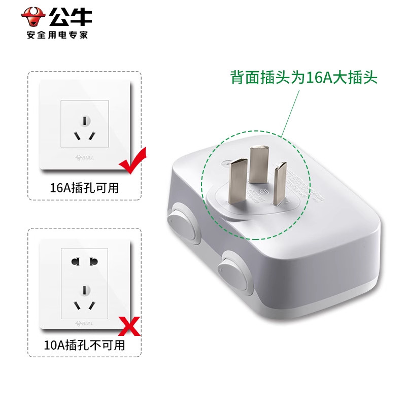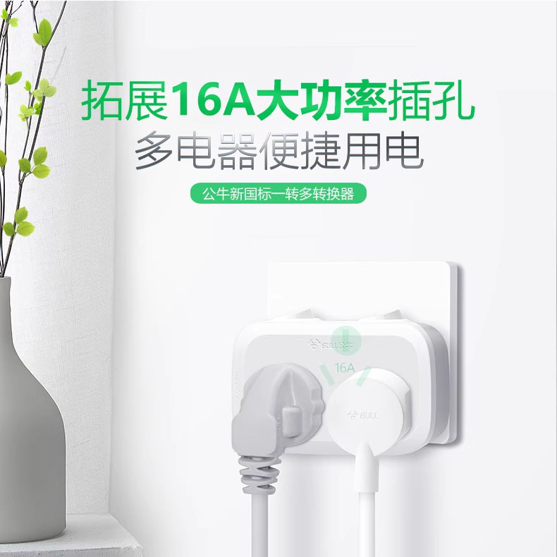 公牛插座转换器16A转10A安专用插排一转二无线扩展插头空调热水器