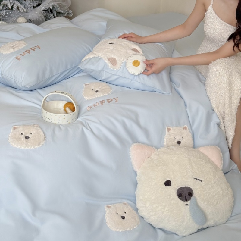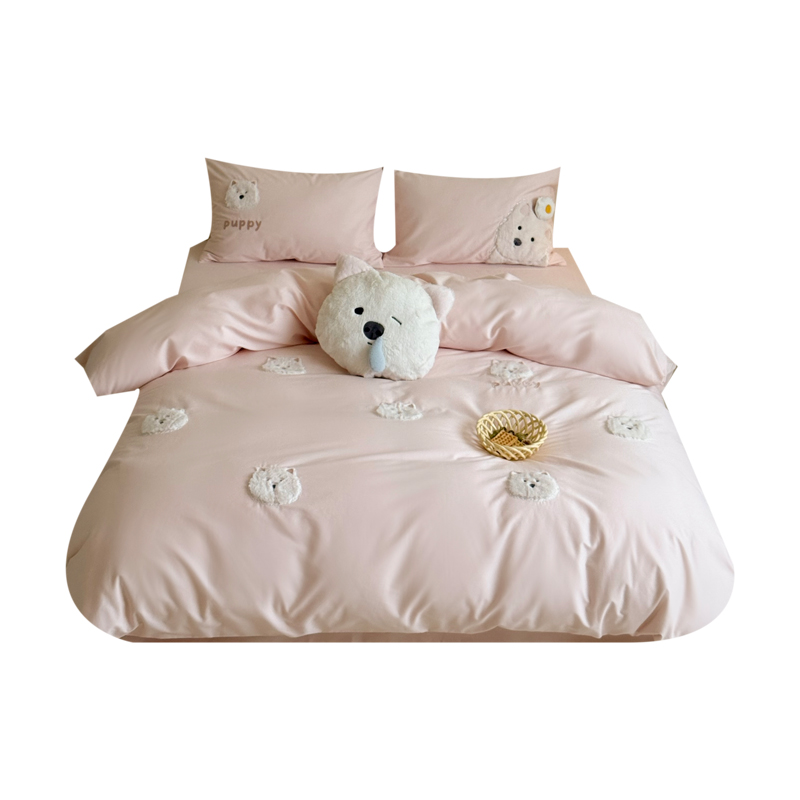 没烦恼|ins高端卡通小狗100s全棉磨毛四件套1.8笠可爱少女心儿童
