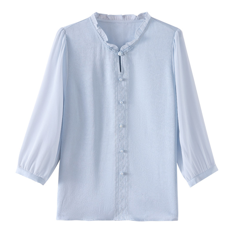 木耳边中年妈妈薄款雪纺拼接衬衫