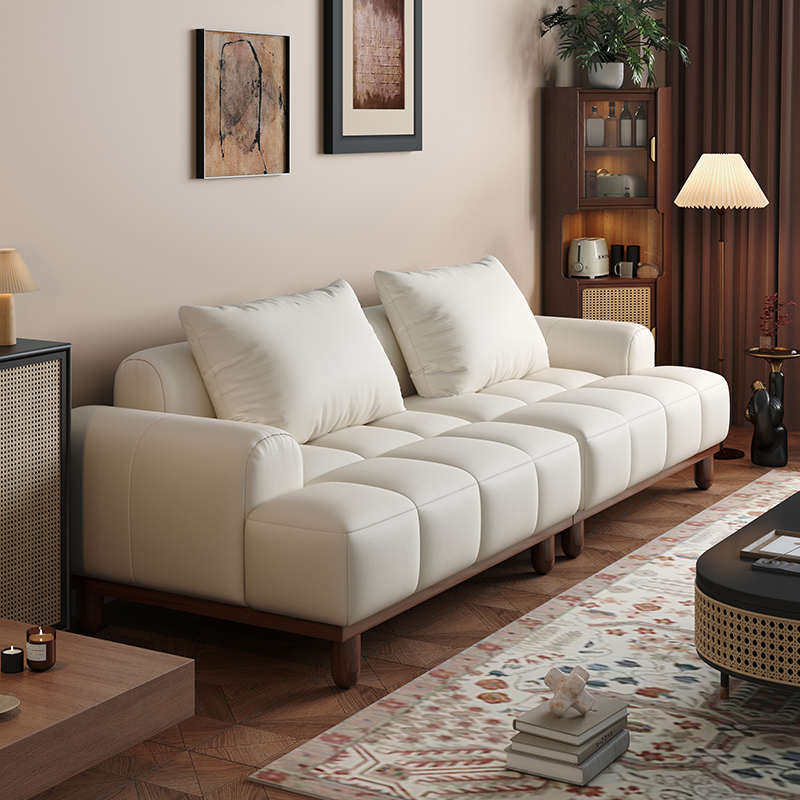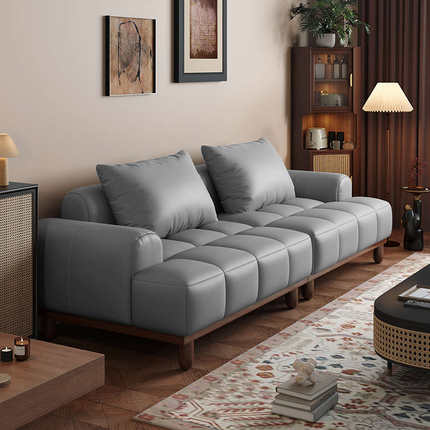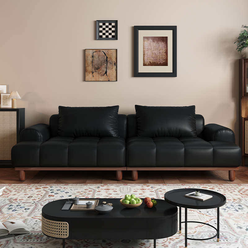 现代简约黑色复古猫抓皮沙发客厅轻奢小户型公寓直排木架皮艺沙发
