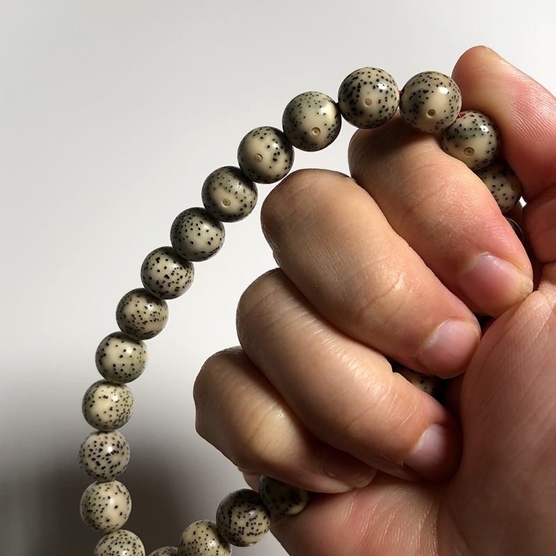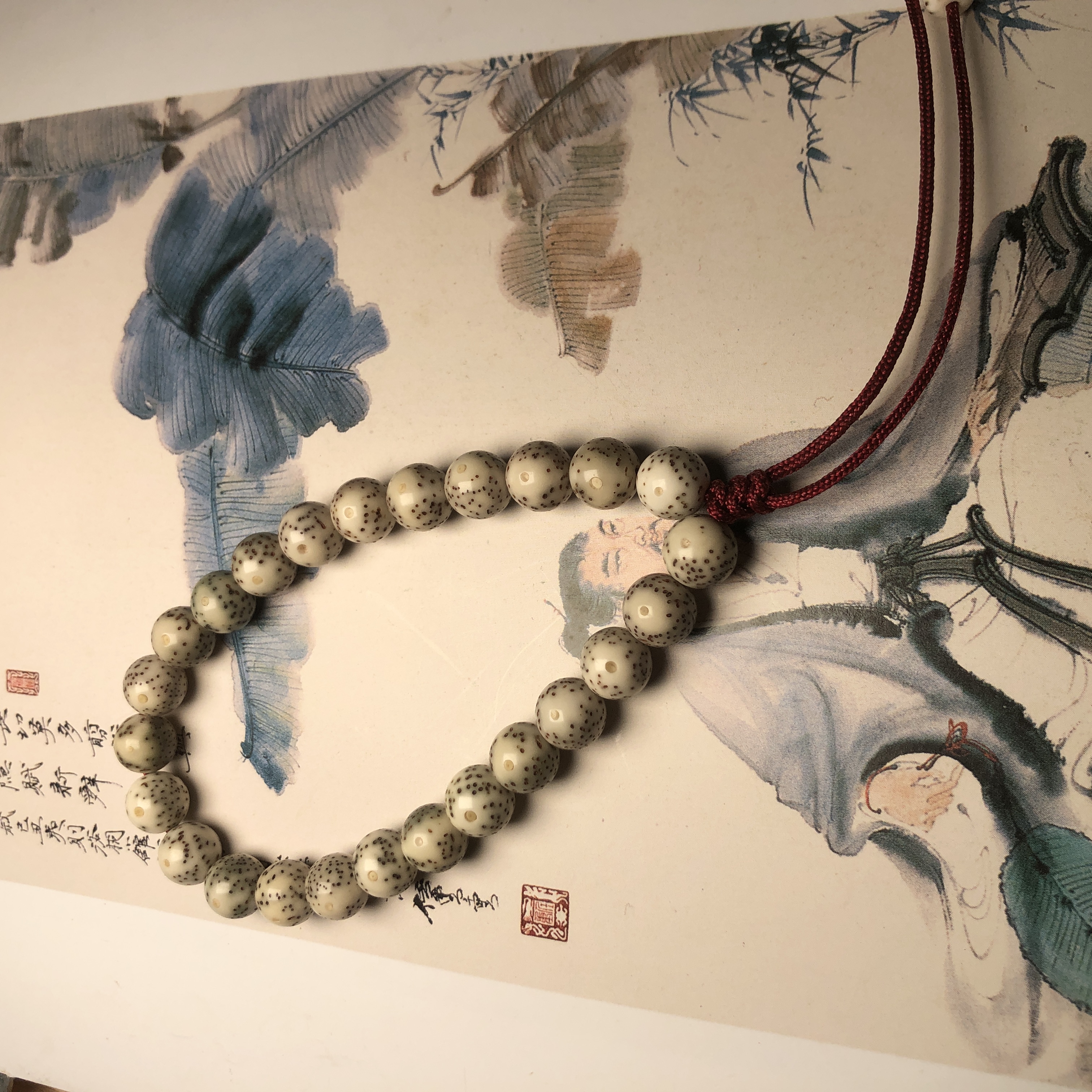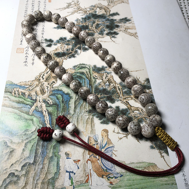 本命年原生态石玉料奶奶灰骨瓷白星月菩提圆珠手持圆珠留白手串