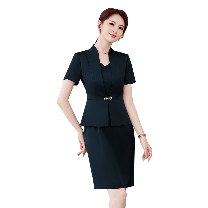 英郦新中式黑色无领西装套装裙女夏季薄款2025新款职业装西服外套