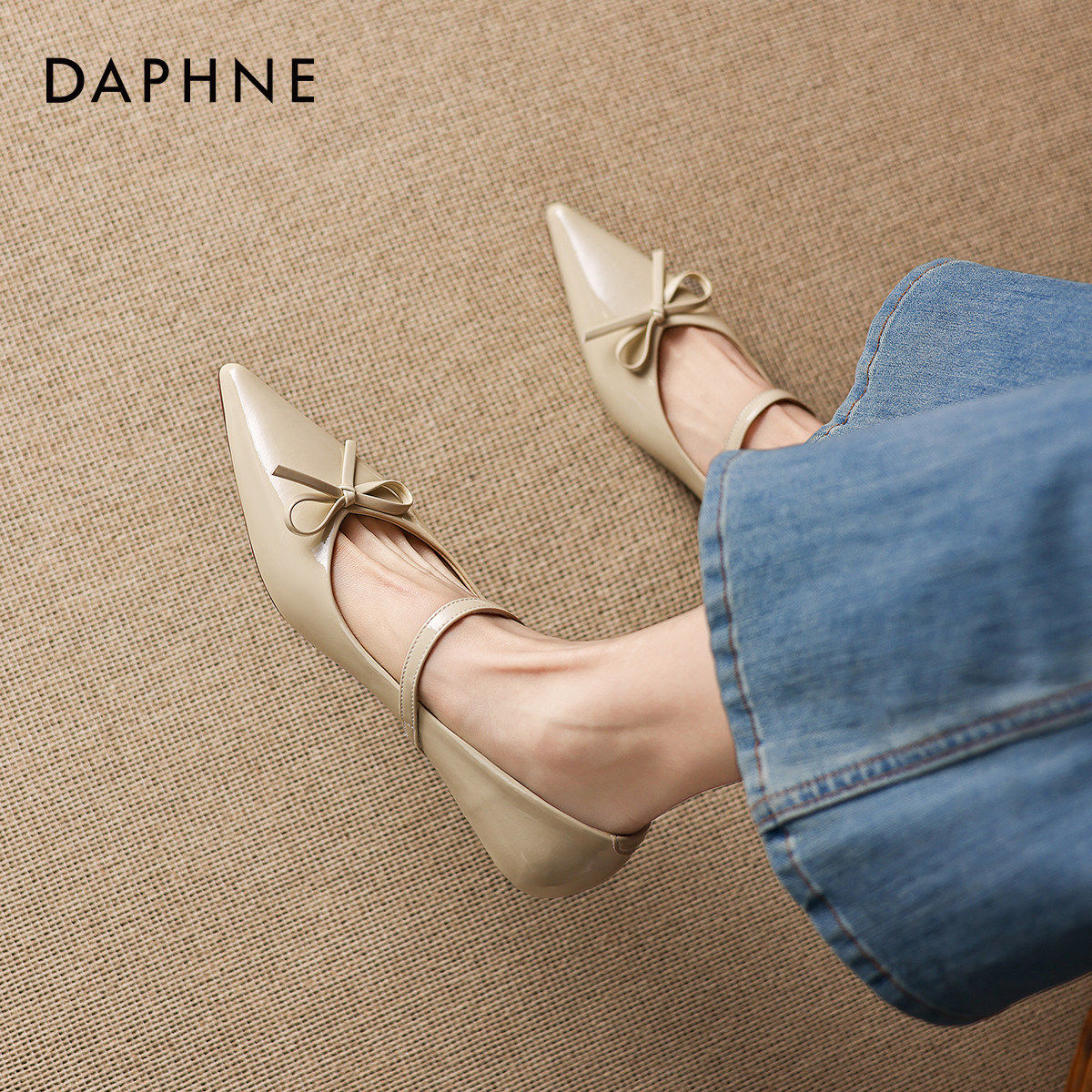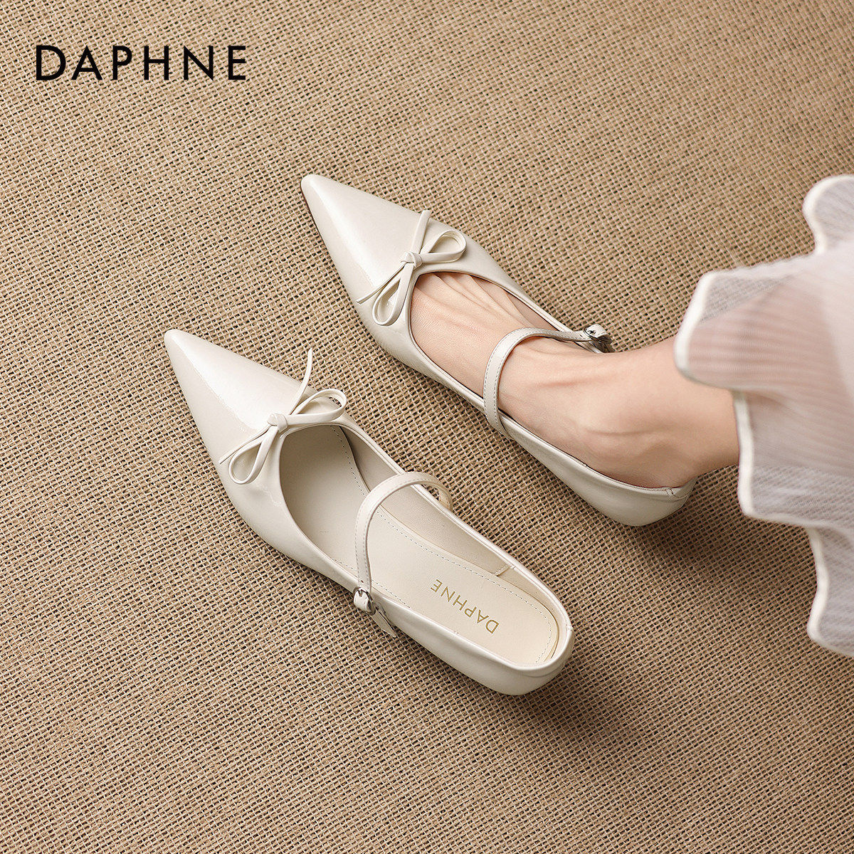 达芙妮细跟浅口单鞋女款2026新款春季法式气质玛丽珍鞋尖头小皮鞋