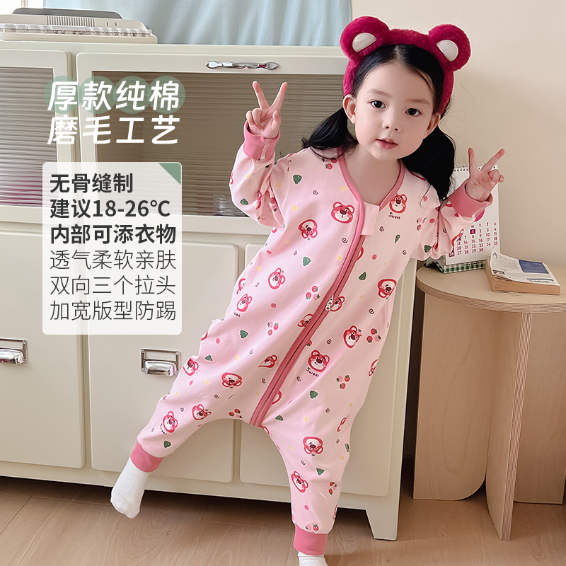 宝宝睡衣春秋款婴儿连体纯棉无痕睡袋卡通女童a类防踢家居服儿童