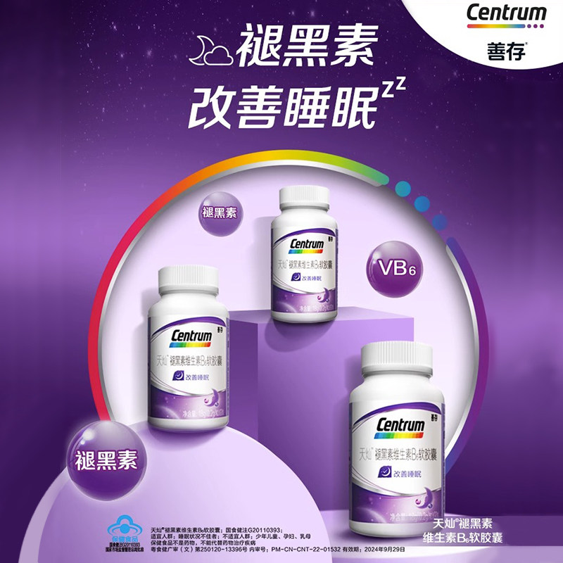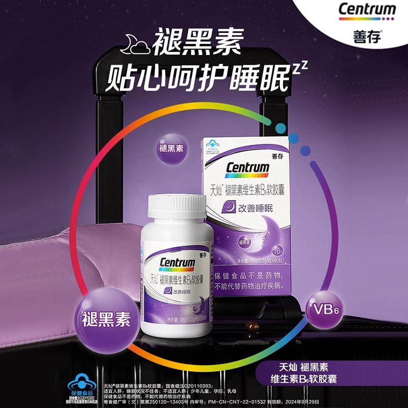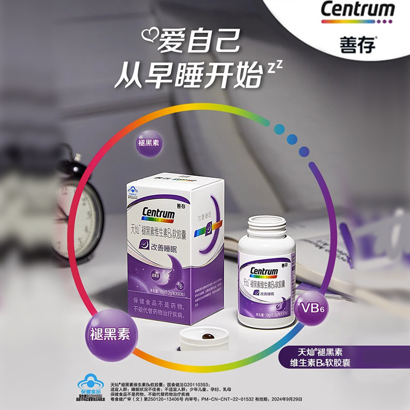 善存褪黑素+VB6软胶囊90粒改善睡眠失眠安眠中老年成人男女士好梦