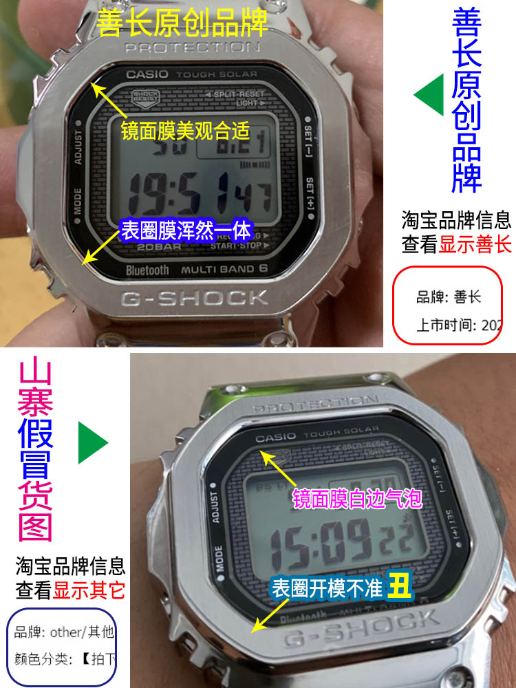 适用于卡西欧GMW-B5000表圈小方块钢化膜表框表扣手表膜贴膜后膜MRG金砖银砖GW-5040后盖膜MRG-5000方块DW