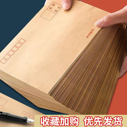 信封牛皮纸500个加厚信纸小号增值税专用发票袋工资文件袋批发a4复古大号可邮寄邮局标准袋子装钱