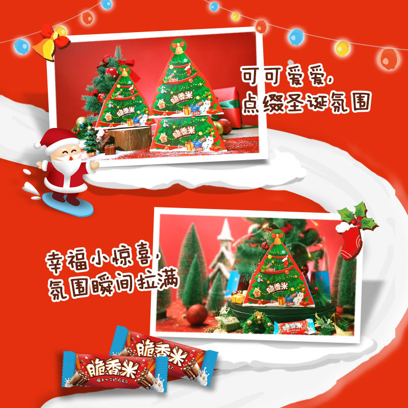 脆香米圣诞限定巧克力礼盒15条装牛奶夹心休闲儿童零食礼物送礼