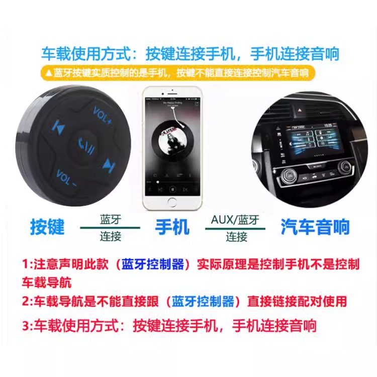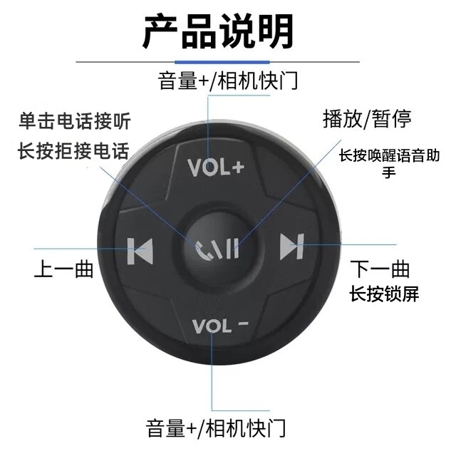 车载手机蓝牙切歌音量遥控汽车摩托车方向盘多功能按键自拍控制器