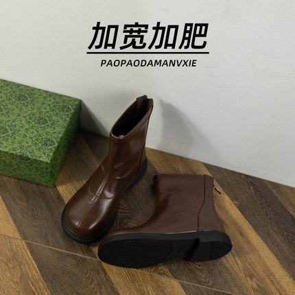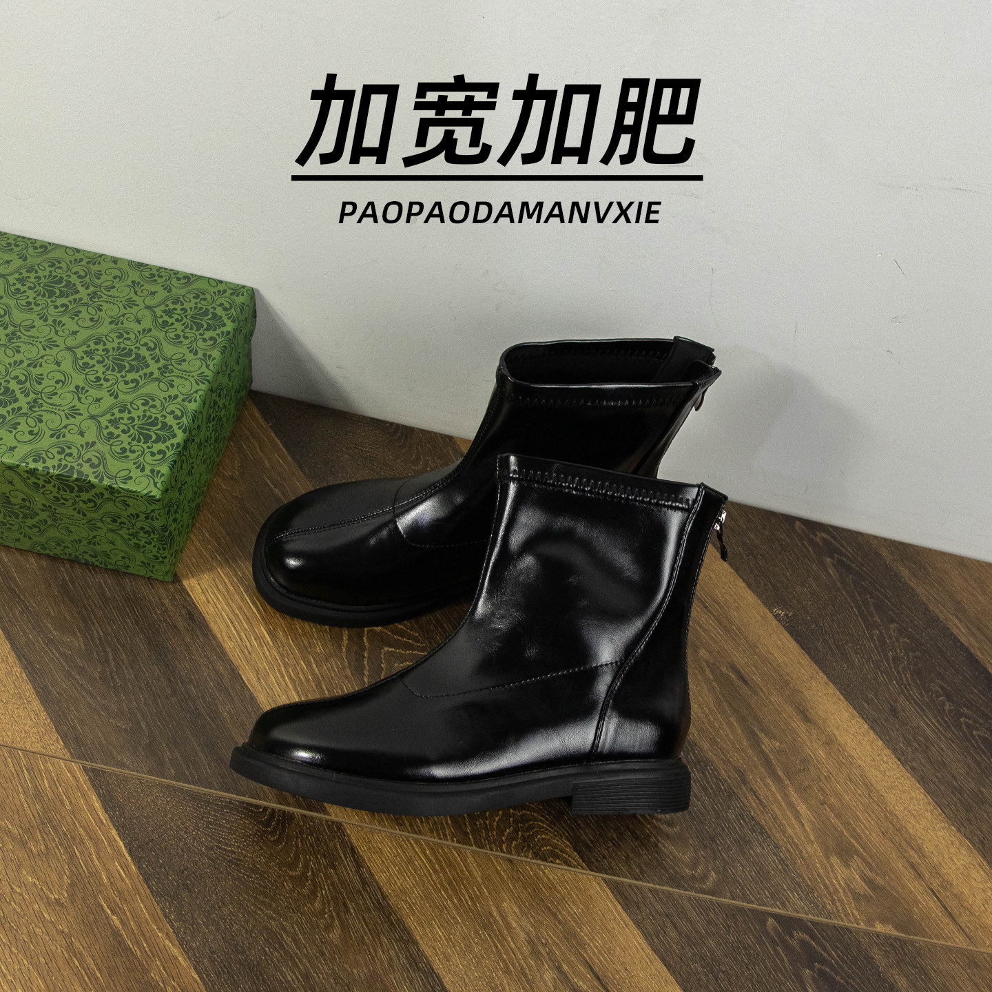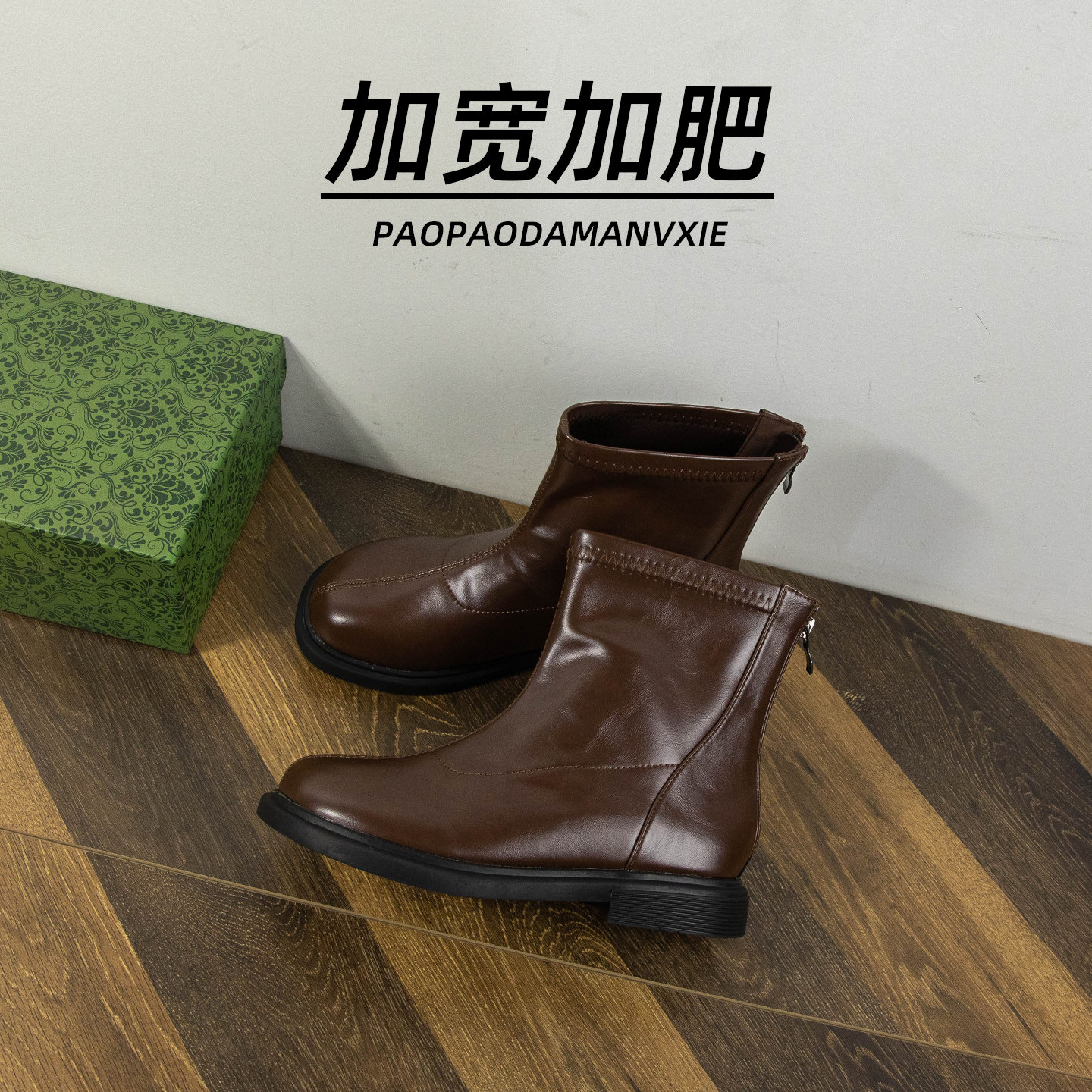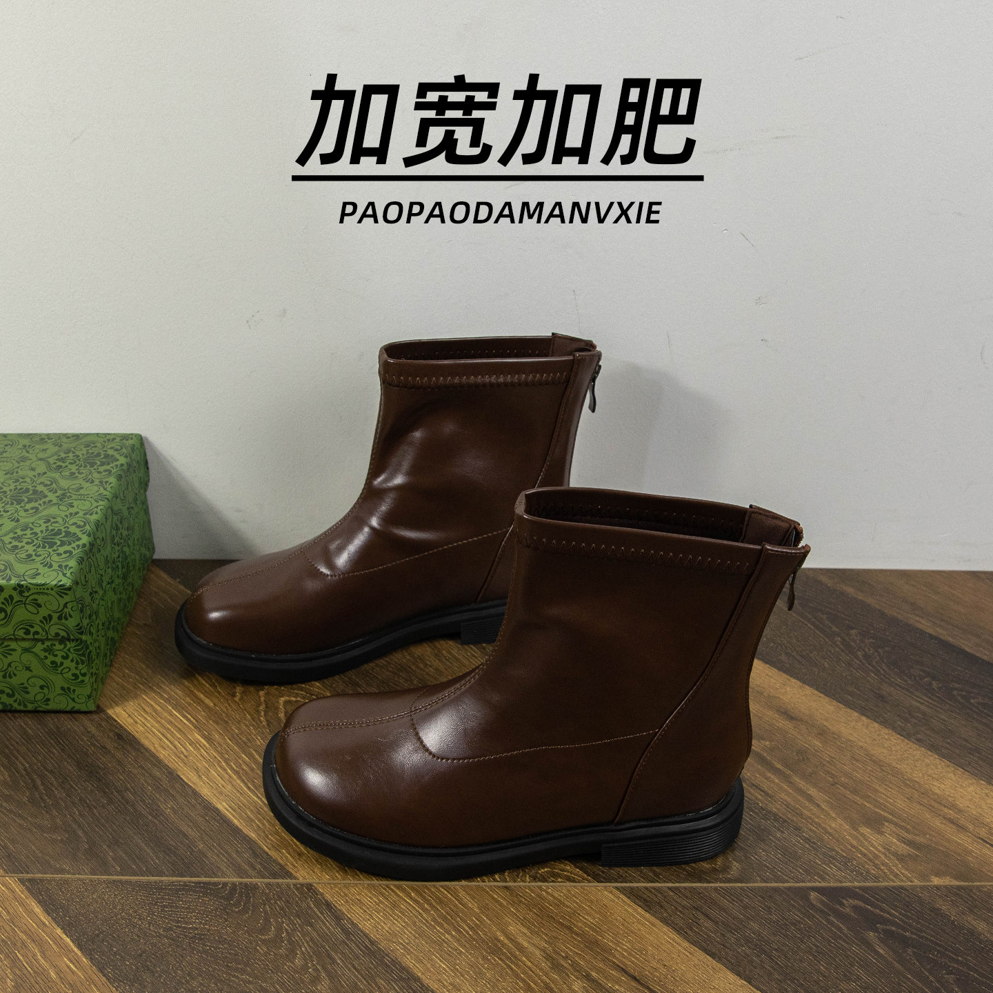 胖脚宽肥大码女鞋41到43马丁靴2025新款复古英伦风平底加绒短靴