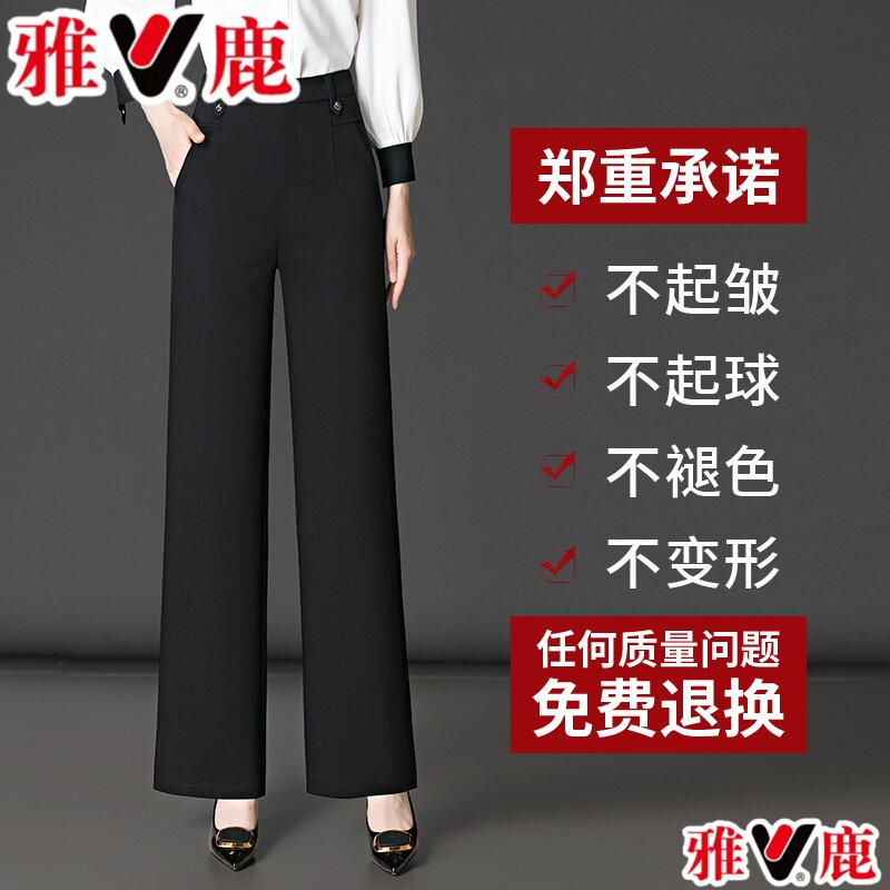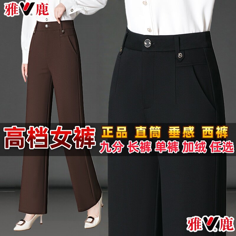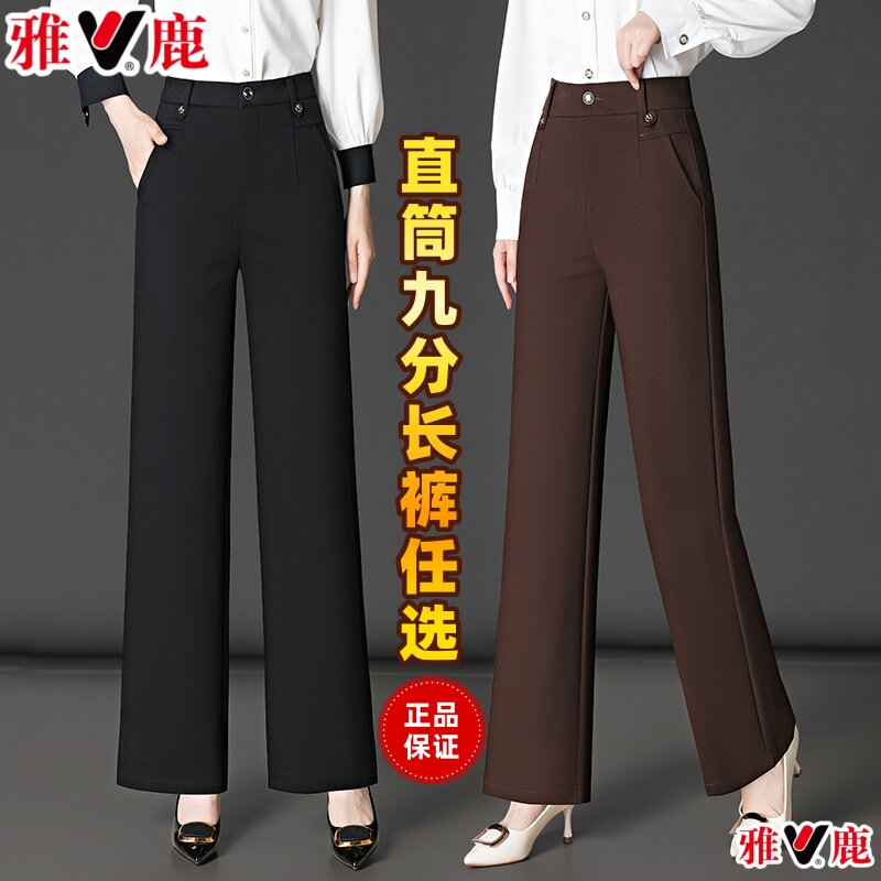 雅鹿裤子女士春秋新款西裤直筒裤中年妈妈裤子西装裤窄版阔腿裤50