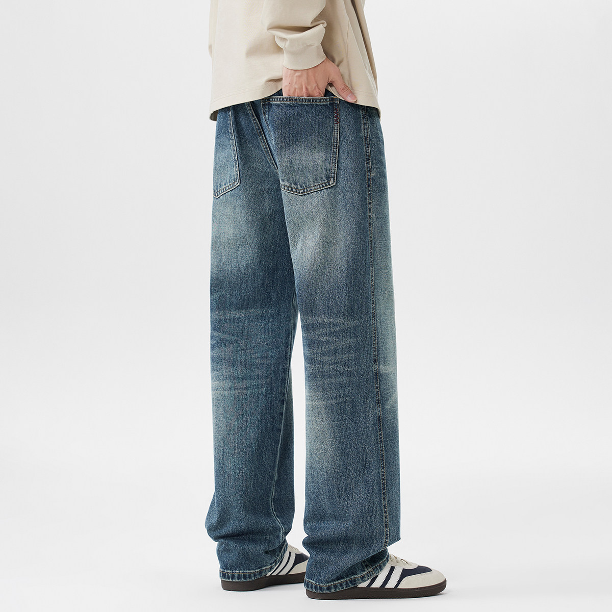 hansca直筒秋季牛仔裤2025新款男阔腿宽松复古水洗美式青少年长裤