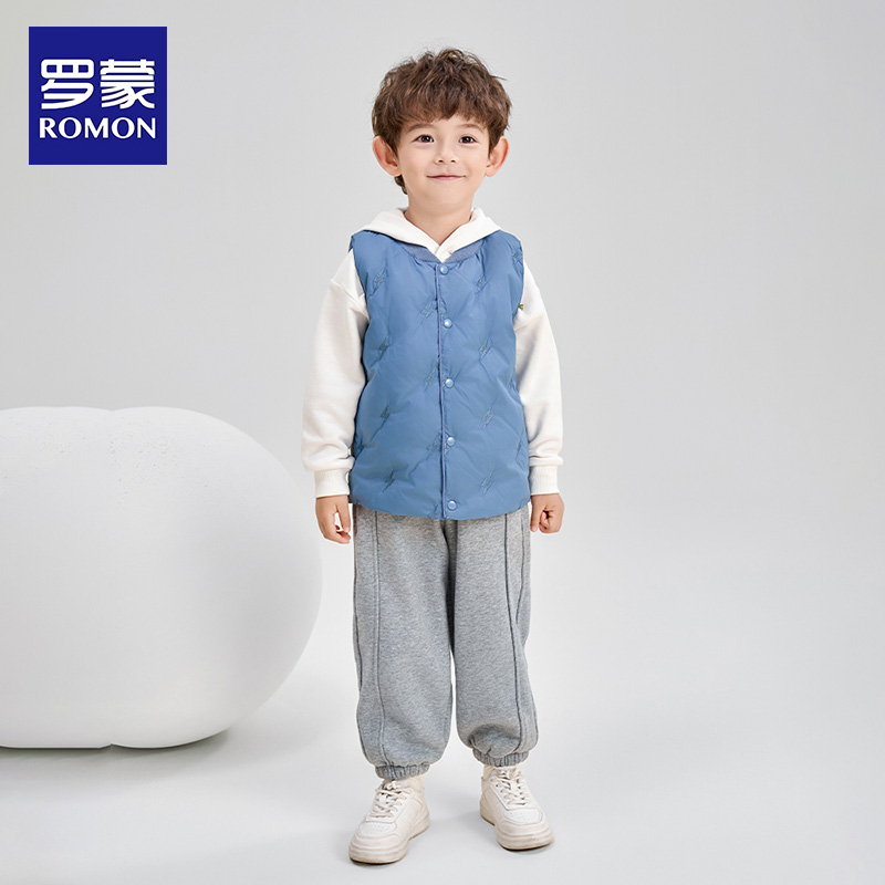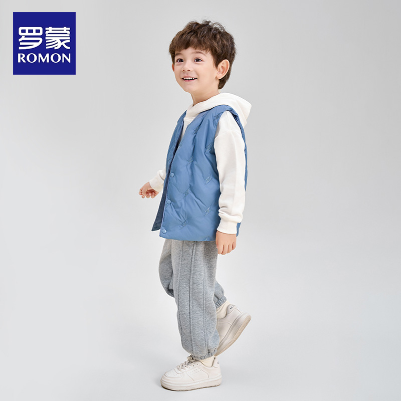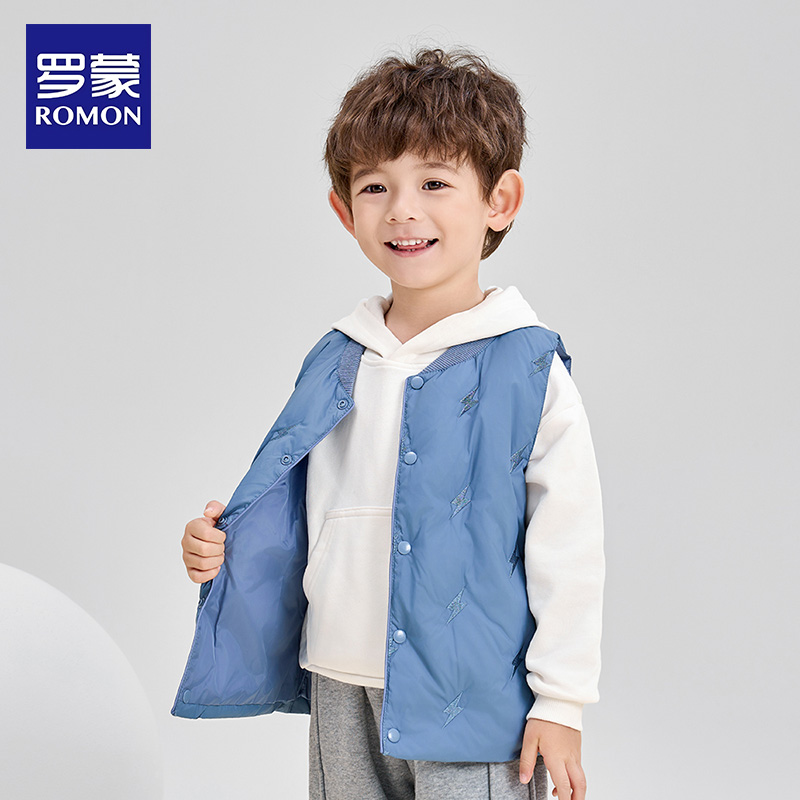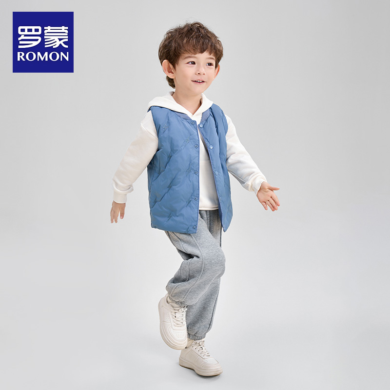 罗蒙童装儿童羽绒马甲秋冬装男童上衣女童外套宝宝校园神器背心帅