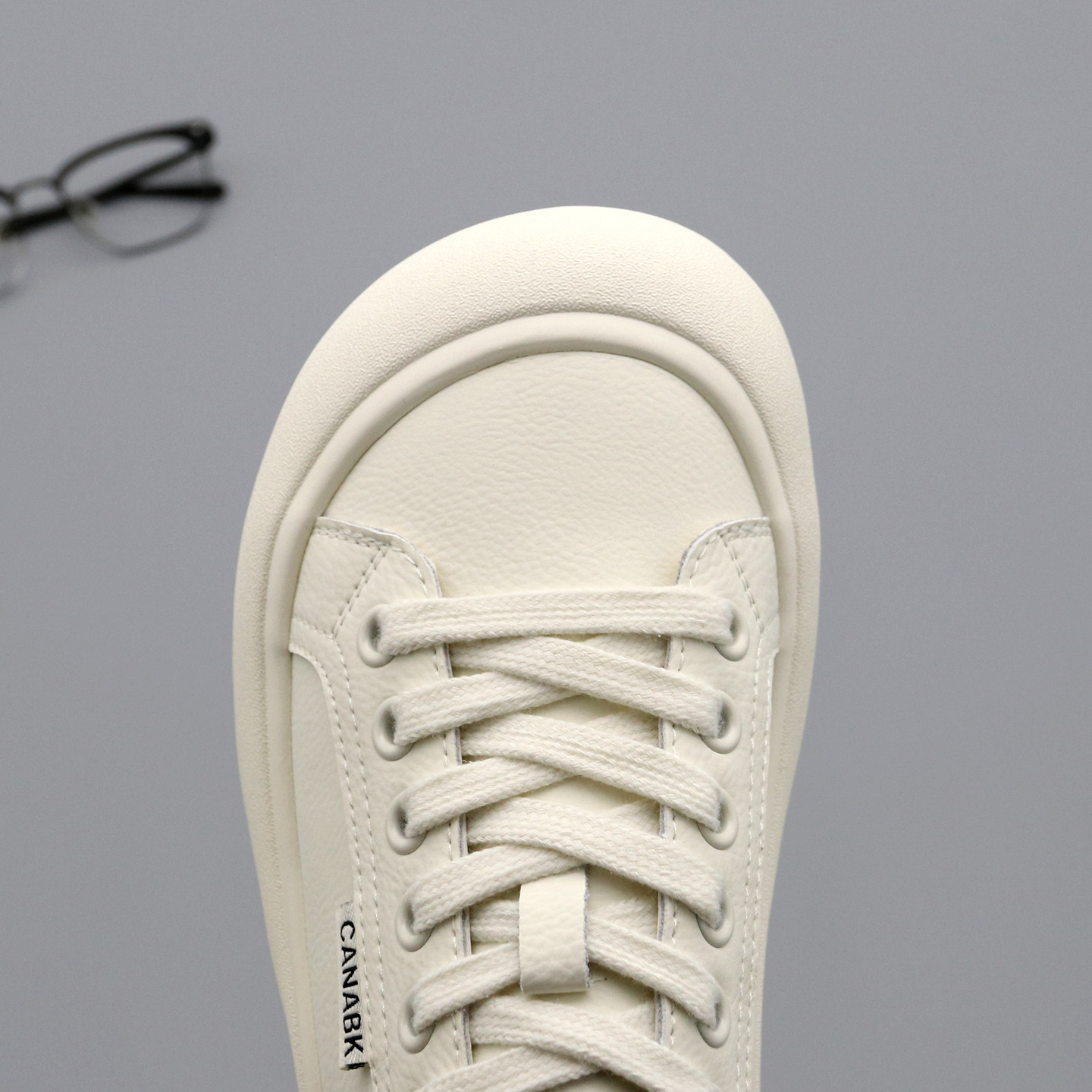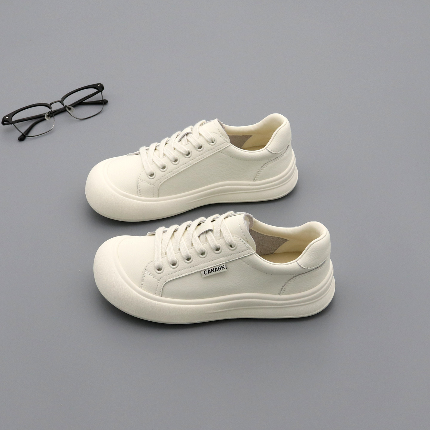 真皮小白鞋女单鞋2025秋季极简娃娃头牛皮系带平底休闲鞋女板鞋子