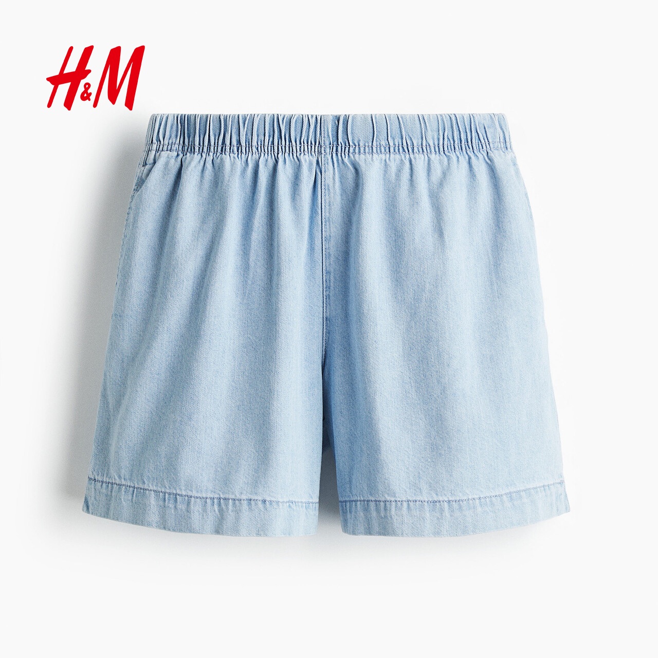 HM女装牛仔裤2025年夏季新款直筒松紧腰通勤休闲牛仔短裤1290168