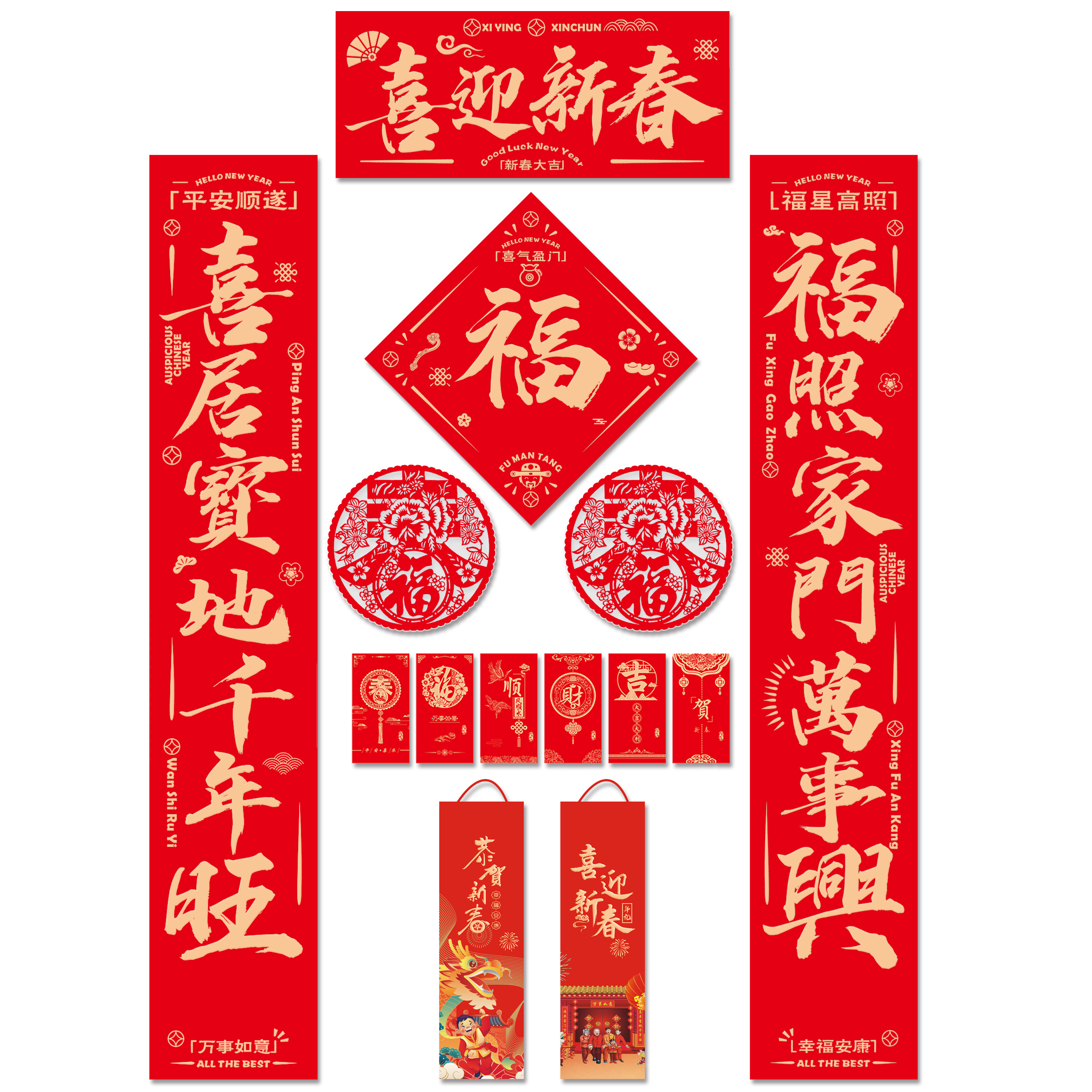 2025蛇年对联定制春联高档特种纸烫金春节礼盒礼包广告定做印LOGO