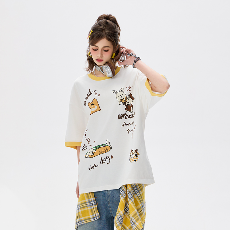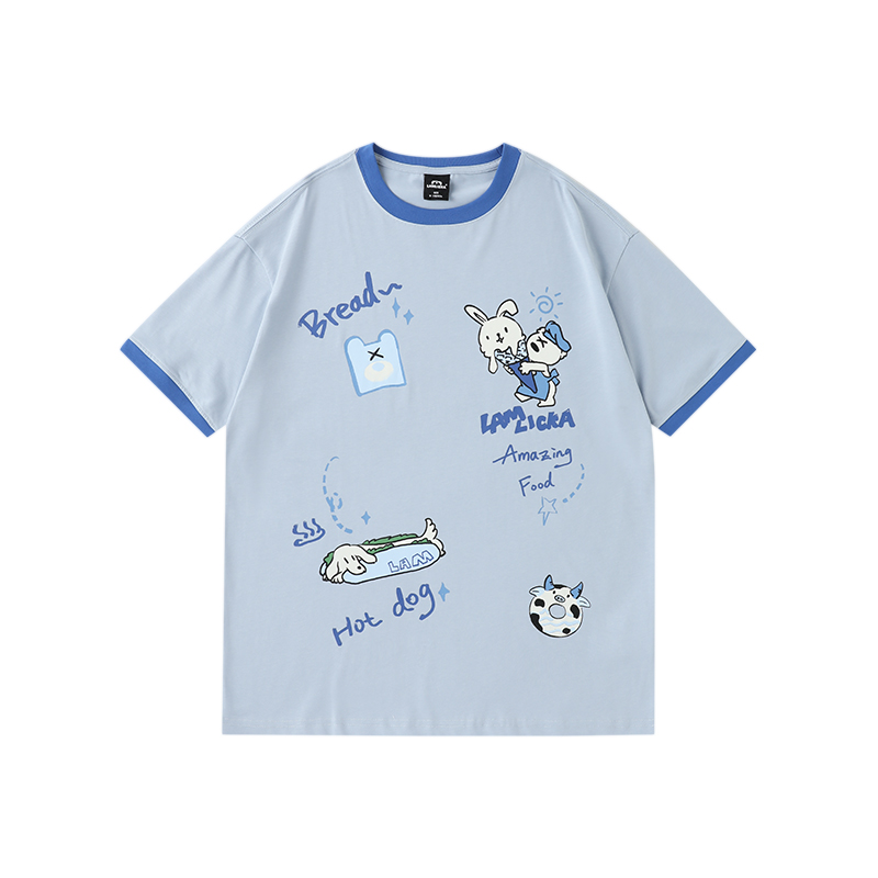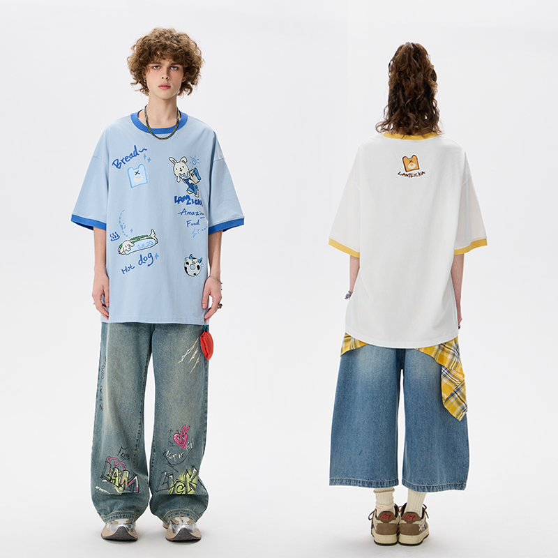 LAMLICKA夏季趣味印花圆领短袖男重磅宽松慵懒风美式潮牌纯棉t恤