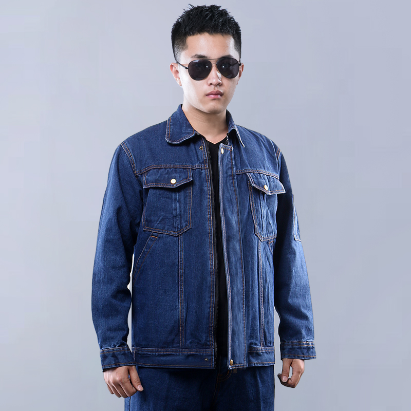 秋冬牛仔工作服套装男 加厚耐磨电焊劳保服 工厂车间工装厂服