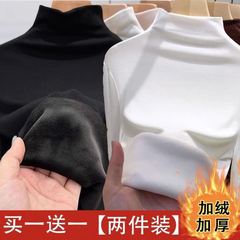单/两件 加绒打底衫女半高领修身显瘦t恤秋冬季加厚内搭长袖上衣