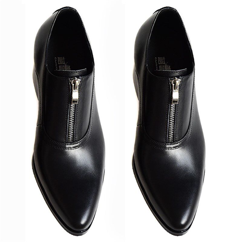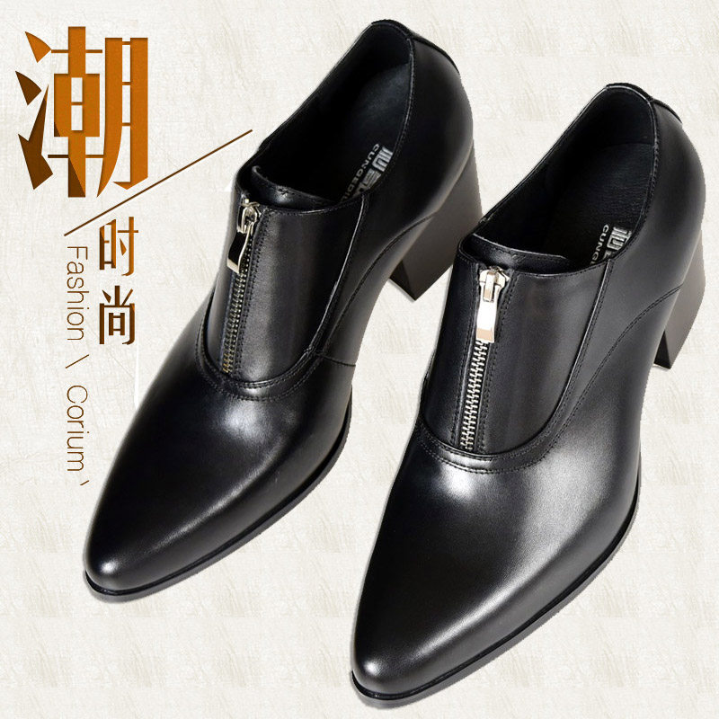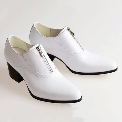 英伦尖头皮鞋男真皮青年发型师鞋子增高鞋男式6CM小码男鞋36白色
