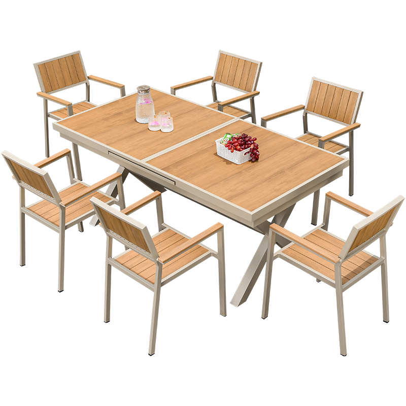 莫家户外桌椅庭院休闲室外 轻奢阳光房露台别墅花园 塑木伸缩桌椅
