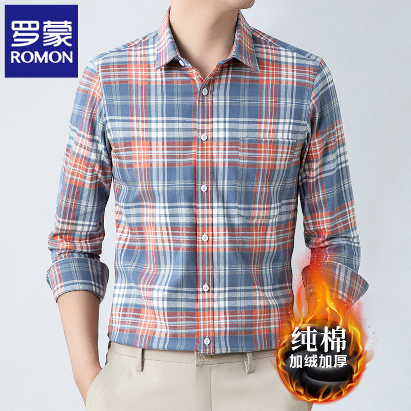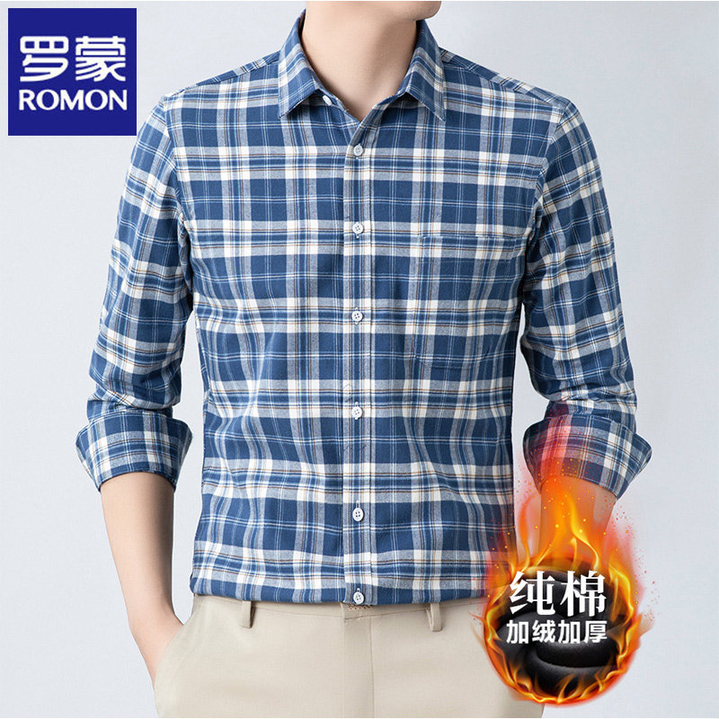 罗蒙秋冬款加绒保暖纯棉衬衫男潮