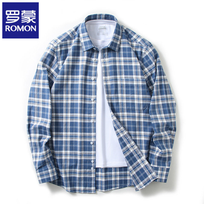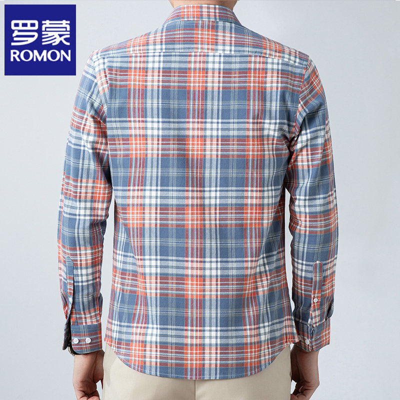罗蒙纯棉格子衬衫男加绒保暖2025秋冬季新款商务休闲方领衬衣男潮