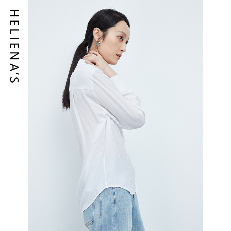 海兰丝秋季新款女装衬衫女主角法式复古优雅长袖包扣精致白衬衫