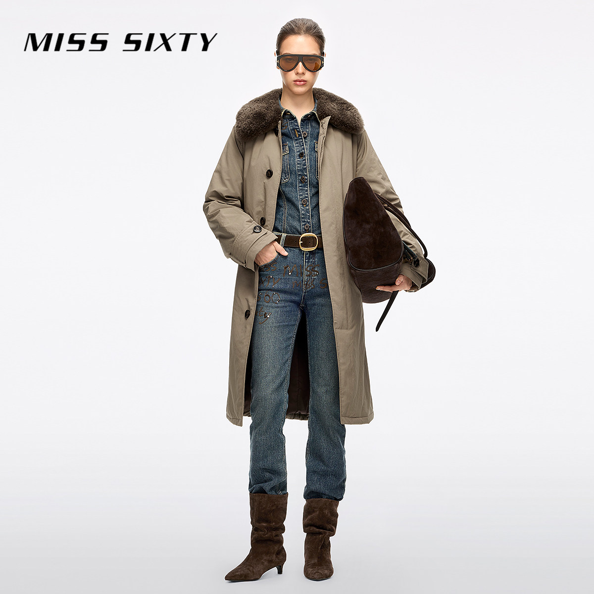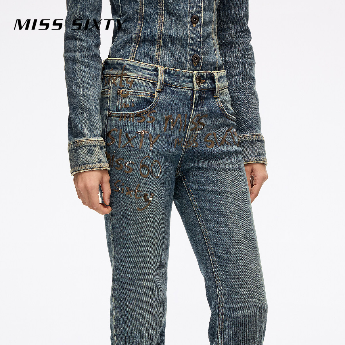 【闪耀派对】杨幂同款Miss Sixty2025冬季新款牛仔裤女烫钻喇叭裤