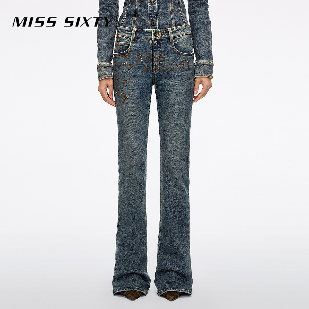 MissSixty烫钻喇叭牛仔裤