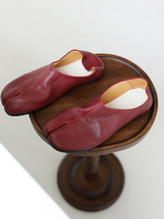 InkingPot彭姐 英伦风软糯羊皮复古分趾鞋平底猪蹄单鞋女穆勒鞋