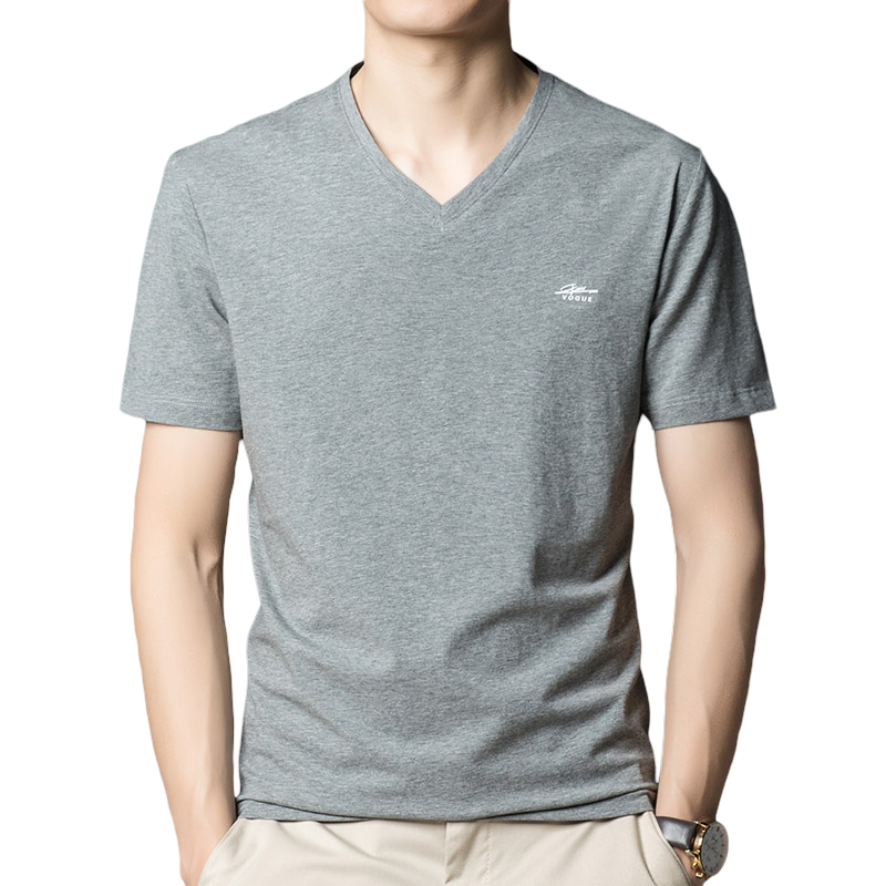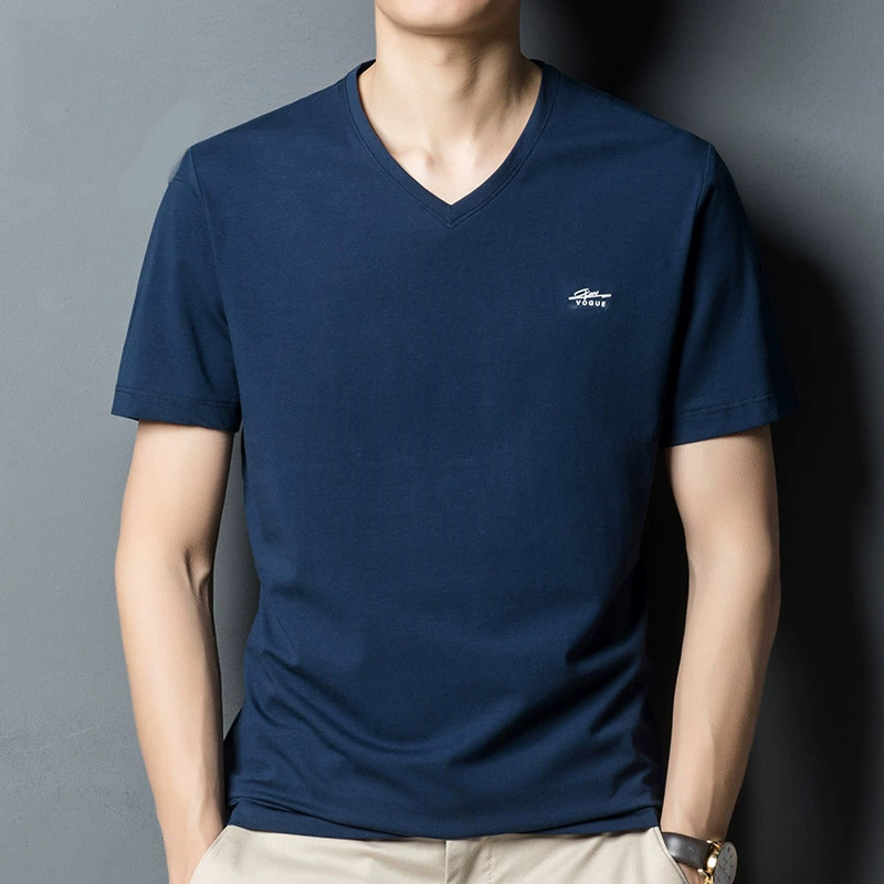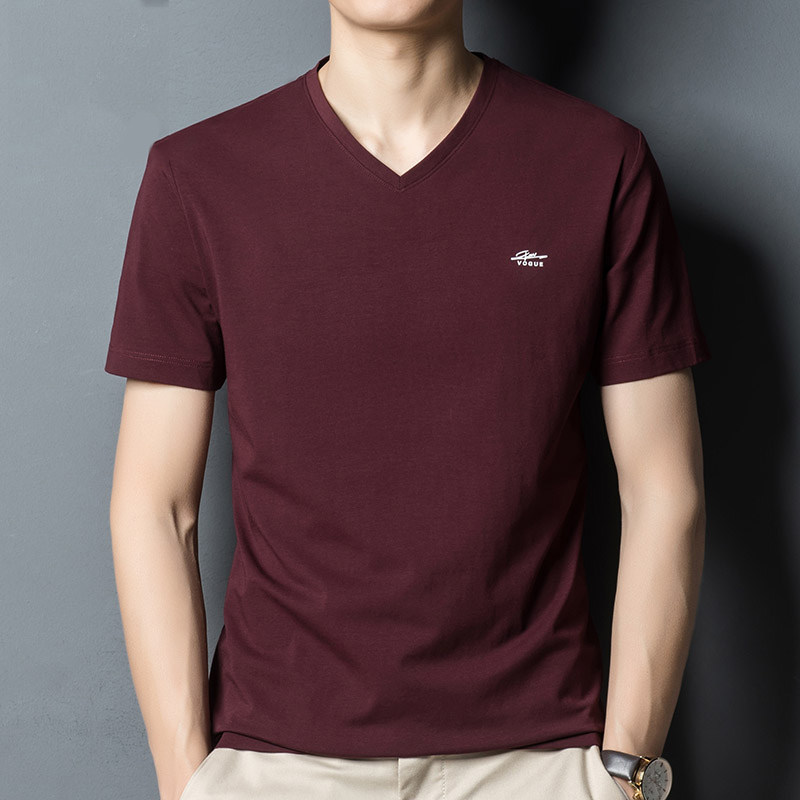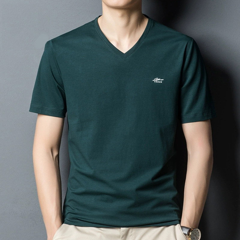 啄木鸟夏季男士v领短袖T恤夏装纯棉鸡心领上衣半袖休闲时尚打底衫