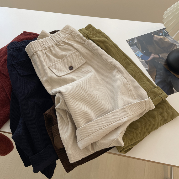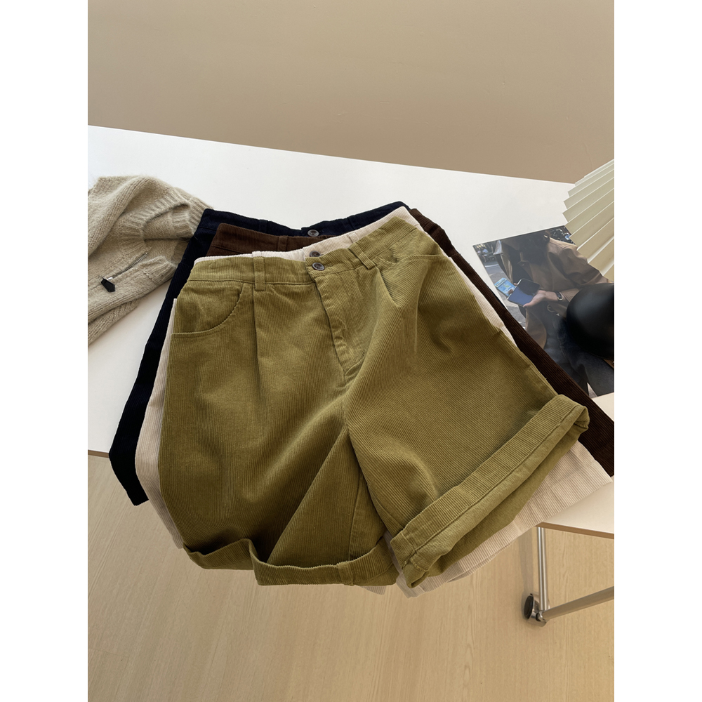 日系复古灯芯绒五分裤!秋季百搭高腰宽松显瘦阔腿休闲短裤中裤女