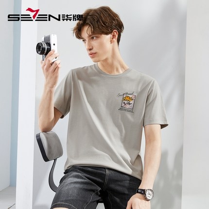 【冰氧吧】柒牌清仓男士短袖T恤夏季凉感时尚休闲刺绣圆领短T上衣