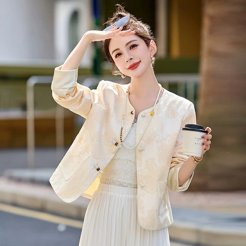 新中式国风外套女春秋轻奢高级感复古盘扣提花名媛小香风短款上衣