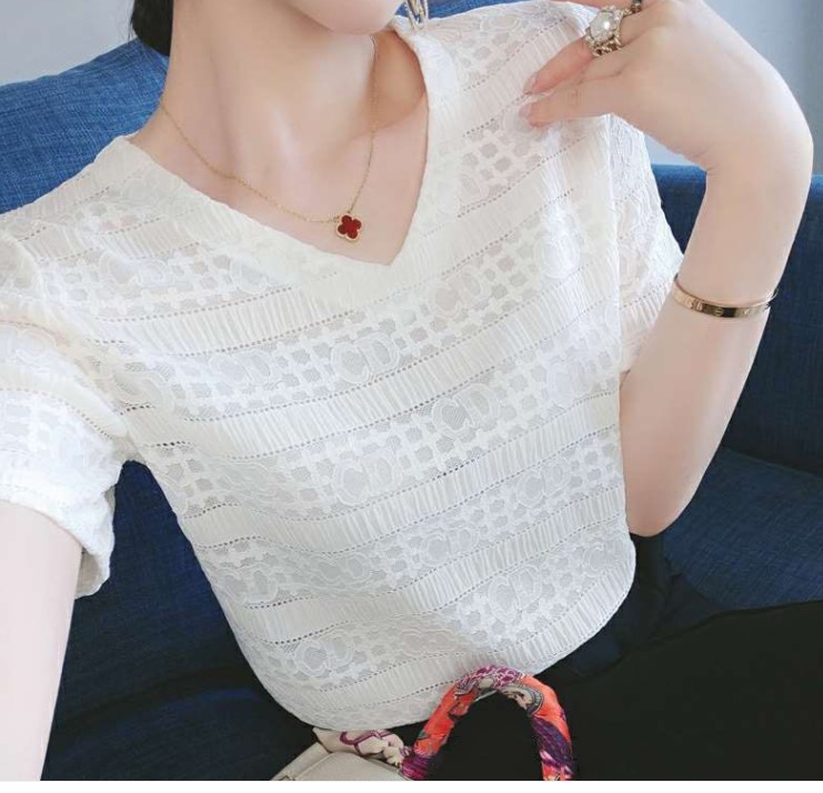 短袖t恤雪纺衫百搭短袖气质蕾丝