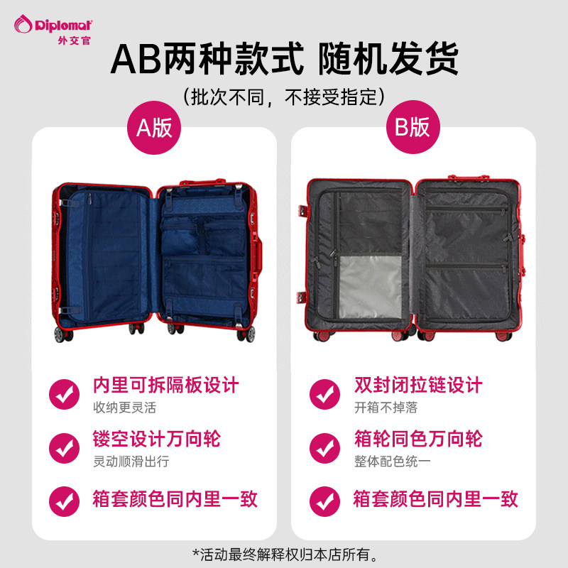 diplomat外交官红色行李箱结婚陪嫁箱拉杆箱旅行箱新娘皮箱登机箱
