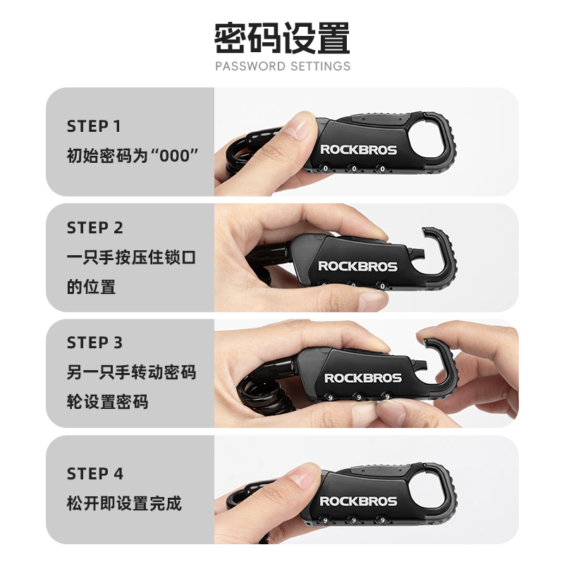 洛克兄弟便携头盔锁公路自行车电动摩托车骑行密码锁行李箱防盗锁