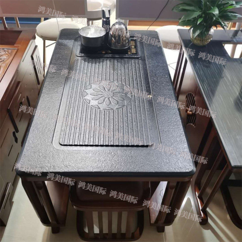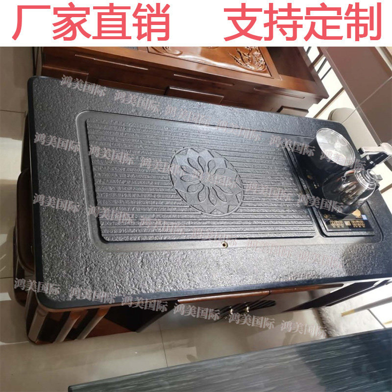2020新款火烧石功夫茶台面板定制家用室外黑色大理石一体大茶盘