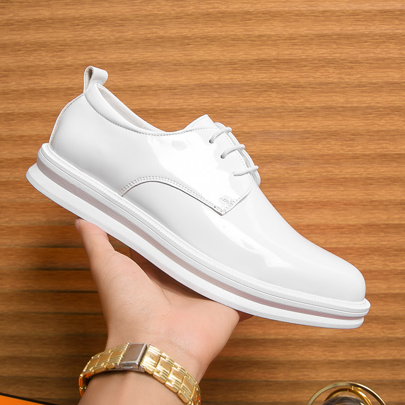 全白男鞋英伦风亮面白色皮鞋正装影楼拍照婚鞋韩版初中学生演出鞋
