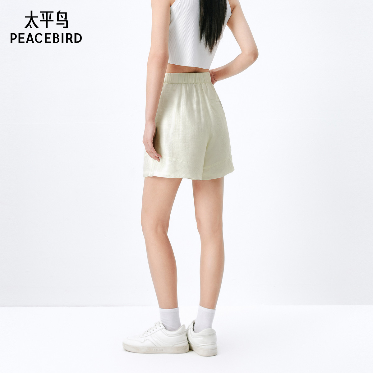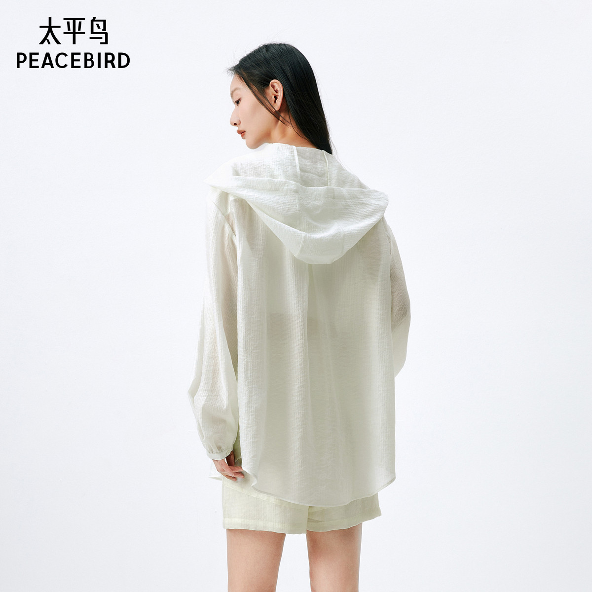 太平鸟莱赛尔连帽长袖衬衫夏新款超薄光泽感衬衣短裤套装组合