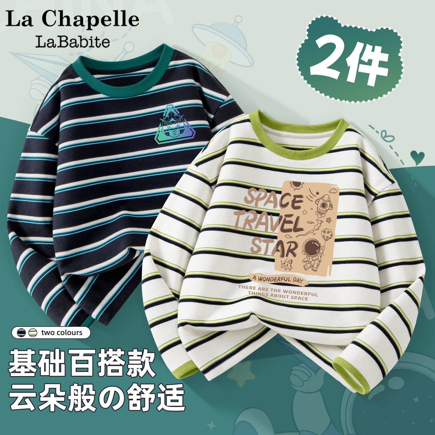 拉夏贝尔男童秋季长袖t恤2025新款春秋款条纹上衣儿童秋装打底衫