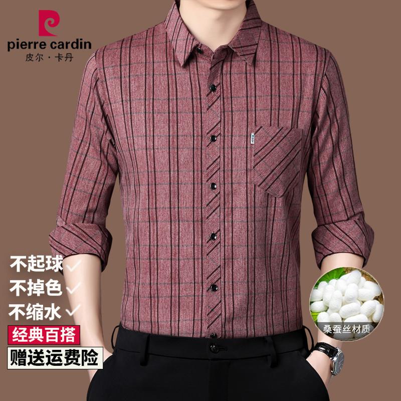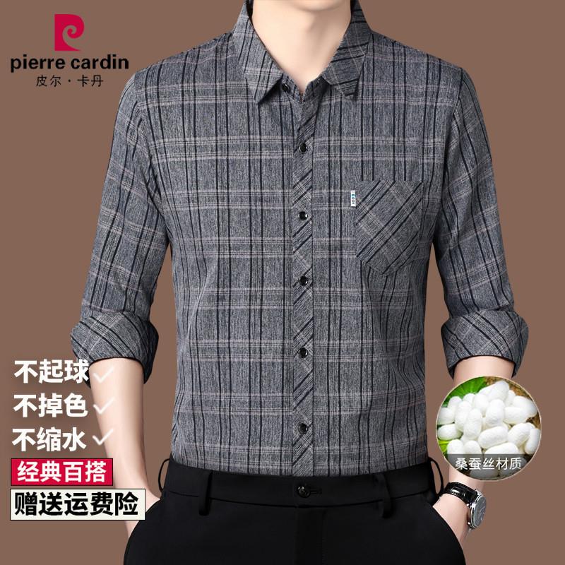 皮尔卡丹桑蚕丝春秋男士长袖衬衫