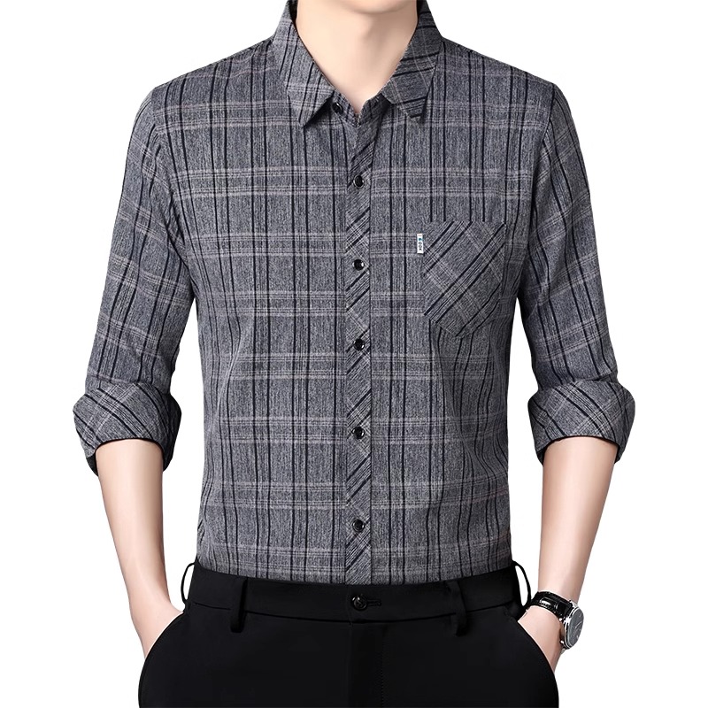 皮尔卡丹桑蚕丝2025春秋新款男士长袖亚麻衬衫免烫真口袋条纹衬衣