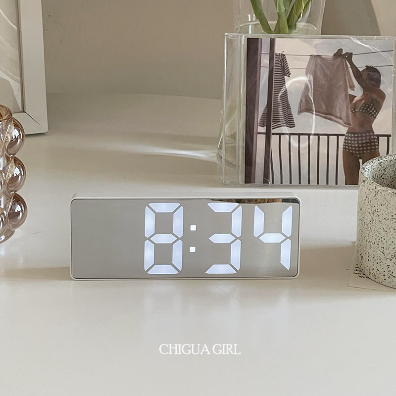 ins静音数字电子钟闹钟夜光镜面学生桌面智能简约多功能时钟台式