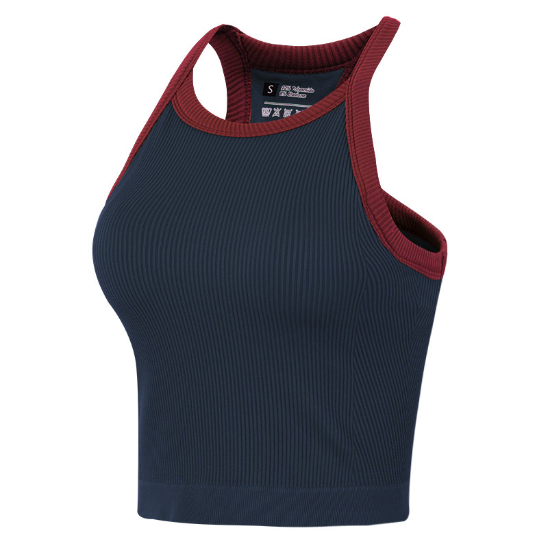 岚纹含胸垫拼色瑜伽背心女跑步防震运动内衣训练美背健身文胸夏季